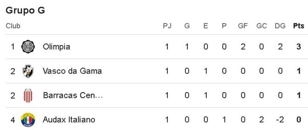 Duro inicio de los floridanos, que quedaron como colistas del Grupo G tras esta primera fecha. En tanto, Olimpia es líder, y Vasco da Gama con Barracas Central tiene 1 punto, después de igualar 0-0.