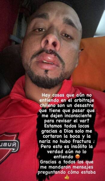 “¿Qué tiene que pasar? ¿Que me dejen inconsciente para revisar el VAR?”, reclamó el defensa de Ñublense a través de sus redes sociales, detallando que sufrió un corte en la boca y la nariz.
