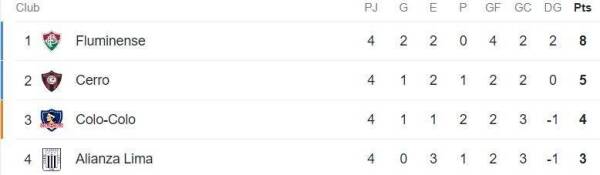 De esta manera, el elenco chileno quedó momentáneamente fuera de la zona de clasificación a octavos de final, al ubicarse en el tercer lugar del Grupo A con cuatro puntos, a uno de Cerro Porteño y cuatro de Fluminense, mientras que el colista es Alianza Lima con tres unidades.