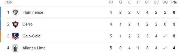 De esta forma, la escuadra de Macul quedó en el tercer lugar del Grupo A, con los mismos cinco puntos de Cerro Porteño, que este jueves visitará a Fluminense a contar de las 18:00 horas, partido en donde a los albos les conviene que los paraguayos no ganen, ya que así, un triunfo en la última fecha les permitiría avanzar a octavos.