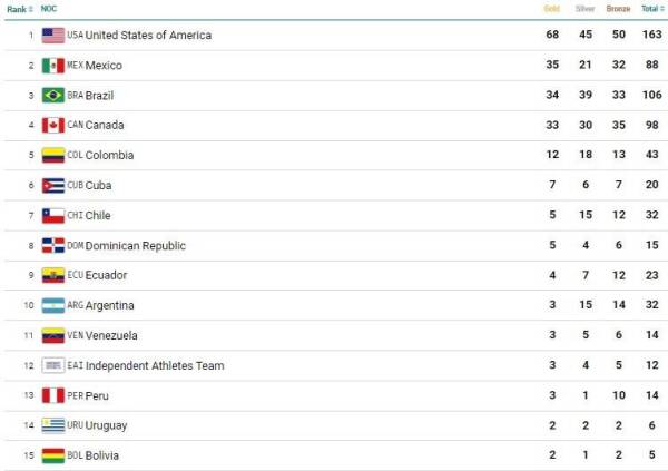 Respecto al medallero de los Juegos Panamericanos, el Team Chile bajó un lugar este domingo, tras descender de la 6° a la 7° posición.