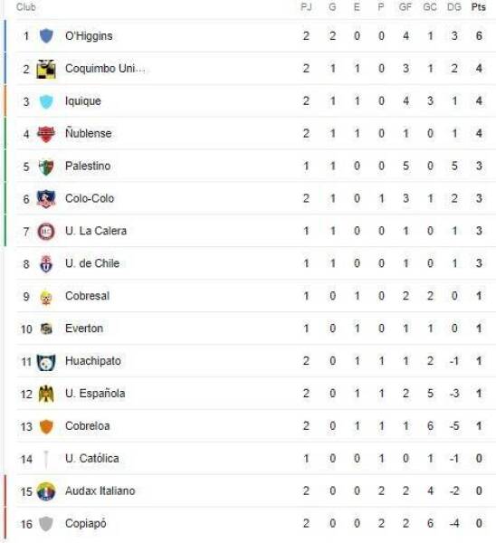 En tanto, la Universidad Católica, cuyo encuentro por la fecha inaugural también fue postergado, debutó con una caída por 1 a 0 ante Ñublense, por lo que de momento, sigue con 0 unidades.
