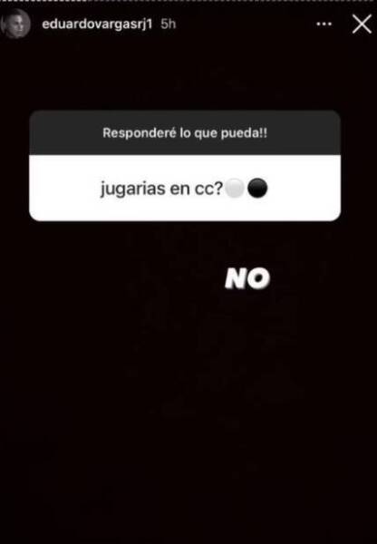 “¿Jugarías en Colo Colo?”, le consultó un usuario en sus historias de Instagram, y el futbolista entregó una contundente respuesta, al decir: “NO”.