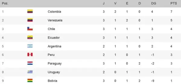 Actualmente, Chile se ubica en el tercer lugar de la tabla de posiciones con 4 puntos, mientras que el elenco blanquirrojo es séptimo con 3 unidades.