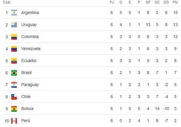 Transcurridas seis fechas del proceso eliminatorio, el combinado nacional sumó solamente 5 puntos, ubicándose en el 8° lugar de la tabla de posiciones de las Clasificatorias (por delante de Bolivia y Perú), fuera incluso de la zona de repechaje.