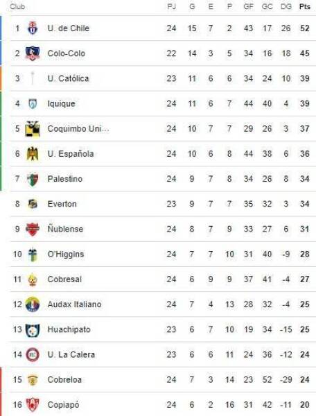 Con este triunfo, Universidad de Chile no solo se mantuvo a la cabeza de la tabla con 52 puntos, sino que además estiró a siete unidades su diferencia con Colo Colo, que tiene dos partidos pendientes (ante Huachipato y Universidad Católica).