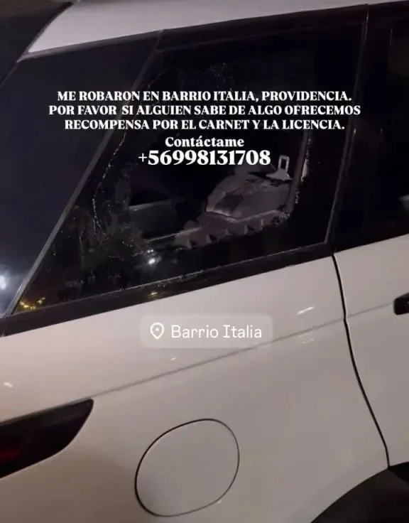 “Me robaron en Barrio Italia, Providencia. Por favor, si saben de algo, ofrecemos recompensa por el carnet y la licencia”, señaló en sus historias de Instagram.