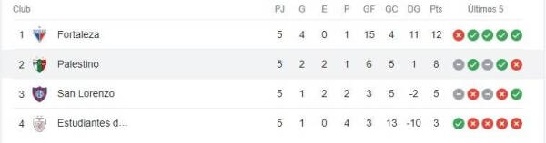 De esta forma, Palestino alcanzó los 8 puntos, manteniendo la ventaja de tres respecto a San Lorenzo, que en la última jornada se verá las caras con Estudiantes de Mérida.