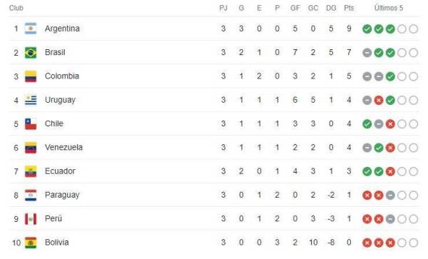 En este sentido, los dirigidos por Eduardo Berizzo se encuentran con los mismos puntos que Uruguay (cuarto por mejor diferencia de gol), que empató 2 a 2 con Colombia; y que Venezuela, su próximo rival, y que viene de sorprender al empatar 1 a 1 con Brasil en condición de visitante.