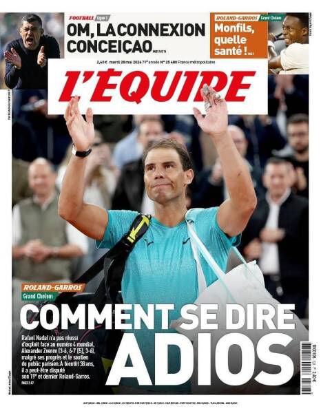 “Comment se dire adiós” (como decir adiós), tituló el diario, destacando que esta podría haber sido la última participación del tenista en el torneo.